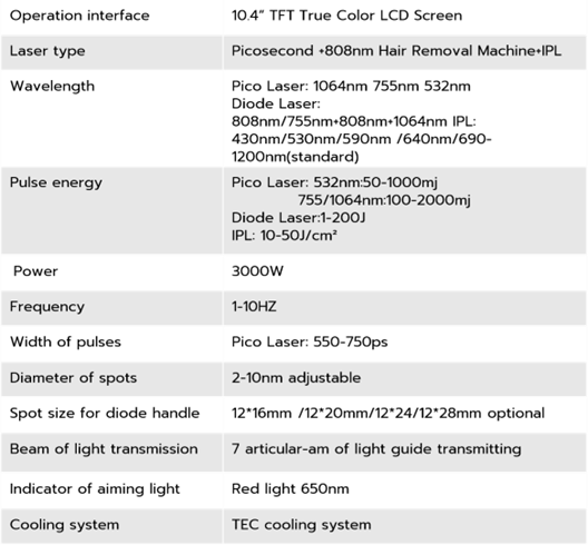 Met Diode, IPL, SHR en Pico-technologie biedt deze machine veelzijdige behandelmogelijkheden, van ontharing en tatoeageverwijdering tot huidverbetering en huidverjonging. Een complete en efficiënte oplossing voor moderne salons!