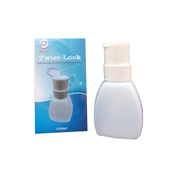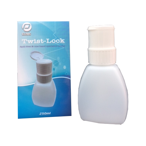 Onmisbaar in iedere beautysalon: handige kunststof depperfles met afsluitbare doseerdop.