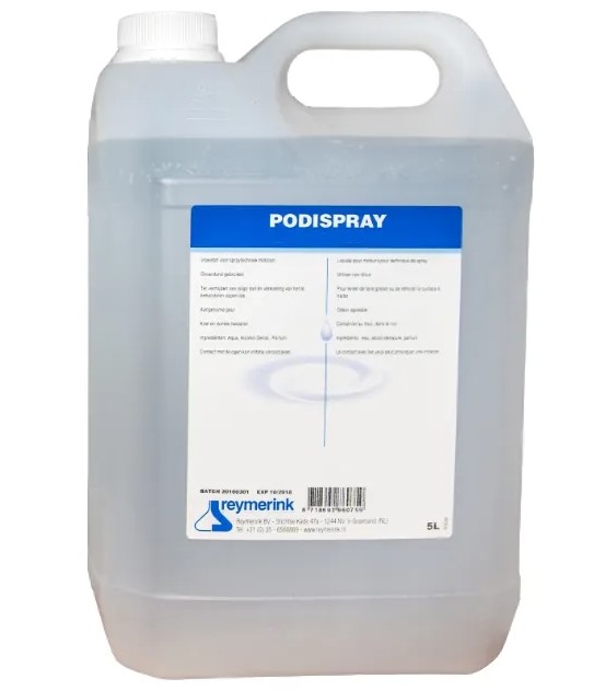 Podispray is speciaal ontwikkeld voor nattechniek pedicure-machines, het is een vloeistof voor de spraytechniek en is direct klaar voor gebruik. Het heeft een stofvangende en koelende werking. De uitgebalanceerde samenstelling bevat geen bestanddelen die het inwendige van de motor aantasten en laat geen restdelen achter.