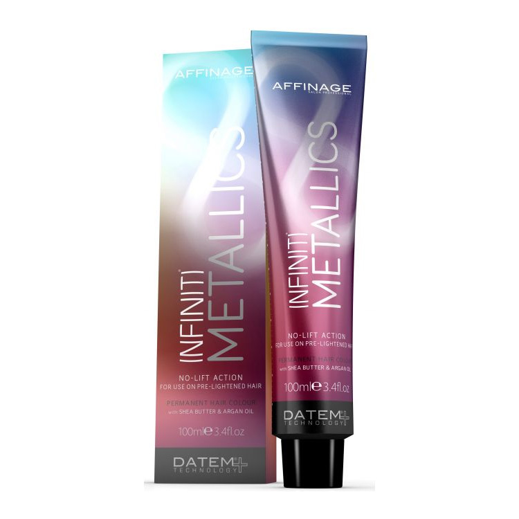 Maak een ongelooflijk metallic effect met deze Affinage Infiniti Metallics haarverf! Deze permanente haarverf is te gebruiken op geblondeerd haar. De geavanceerde DATEM PLUS technologie met shea boter en araganolie zorgt voor prachtige resultaten met een ongelooflijke glans. Door de unieke antivervaag technologie met UV-filters blijft de kleur behouden.