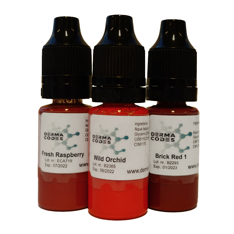 De unieke blend van de Lippigmenten van Derma Codes zijn de absolute must-have op het gebied van PMU. De ervaren PMU specialist weet hoe belangrijk het is om in de juiste kleur pigmenten te kiezen. Wil je een mooie lipcontour creëren of liever een ombre-lip of een full-lip? Met de Lip Pigmenten van Derma Codes kun je al deze prachtige technieken creëren. De pigmenten zijn zo ontwikkeld dat je alle vormen van lip pigmentatie gecreëerd kunnen worden met de prachtige kleuren. Derma Codes presenteert deze unieke lijn pigmenten met maar liefst 11 prachtige kleuren geschikt voor verschillende huidtypes en doeleinden. Vervaagd mooi en geleidelijk zonder kleurverandering. Voor een langer en intenser resultaat zie de Xtreme Ombre Lippigmenten.