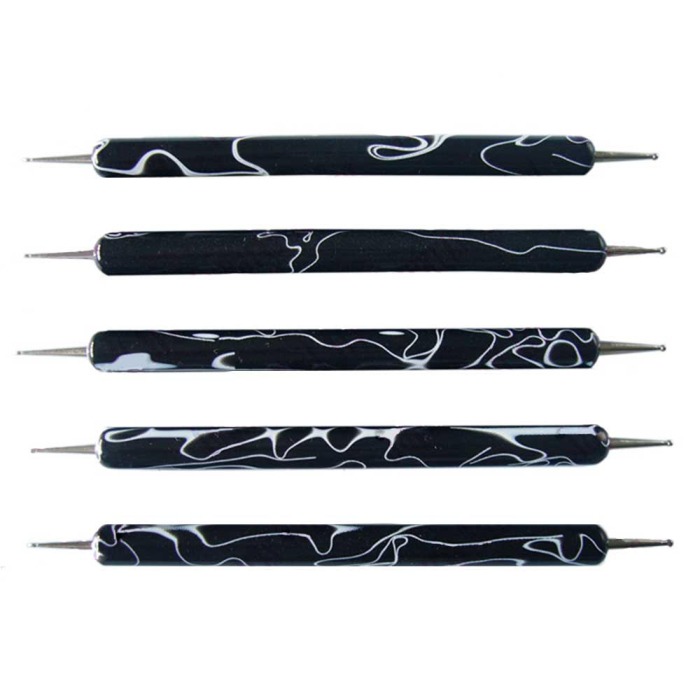 Met deze 5 dotting tools in elegante marmerlook creëer je moeiteloos de mooiste nail art designs. Elke tool heeft twee zijdes met verschillende groottes, waardoor je in totaal 10 verschillende puntmaten tot je beschikking hebt.