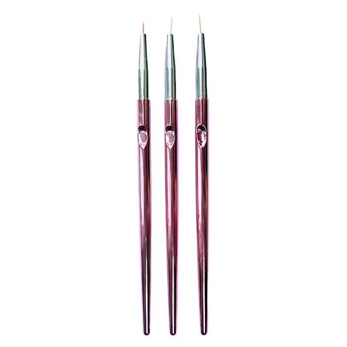 De Nail Art Stripers Roze zijn onmisbaar voor iedereen die houdt van creatieve en strakke nail art designs. Deze set bestaat uit drie verschillende stripers met fijne, precieze penseeltjes waarmee je moeiteloos lijnen, patronen en details aanbrengt.
