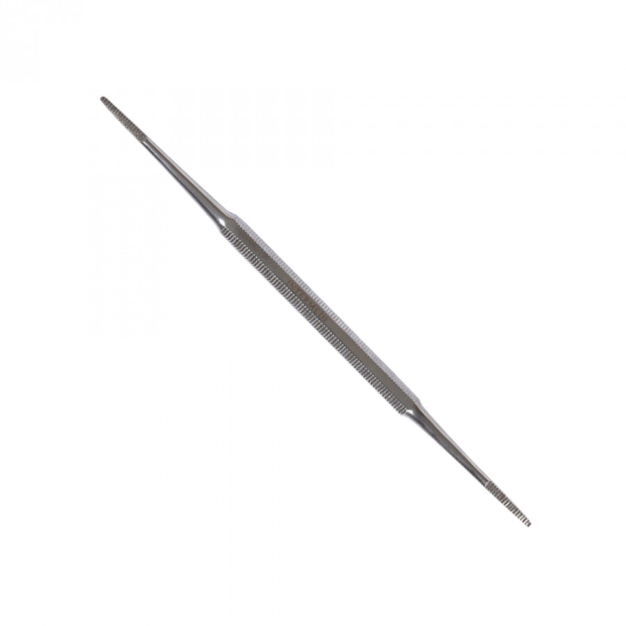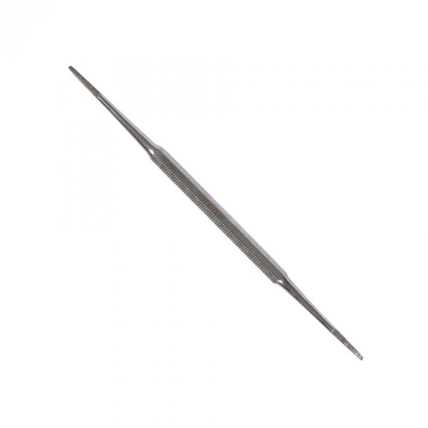 De Dubbele hoekvijl word gebruikt voor het weg vijlen van nagelhoekje op onbereikbare plekken waar met een grote vijl niet bij te komen is.