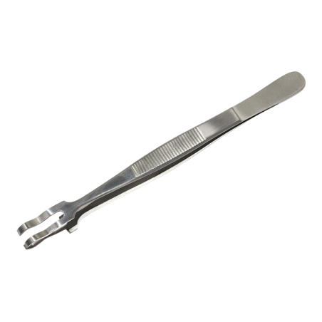 Een speciaal pincet om gemakkelijk en hygiënisch een freesje uit het handstuk te verwijderen of uit de vloeistof te pakken.