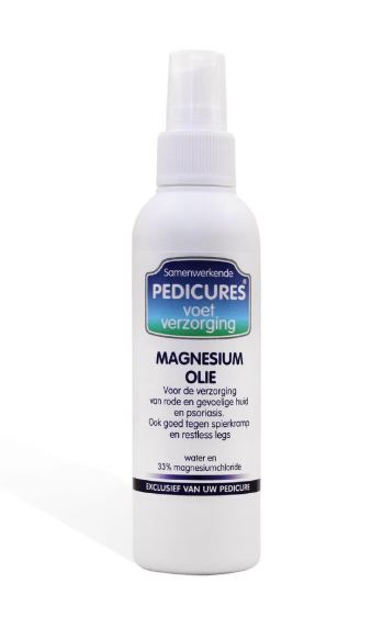 De Magnesium Olie van Samenwerkende Pedicures werkt effectief tegen rusteloze benen en krampen. Het kalmeert ook een psoriasis huid.