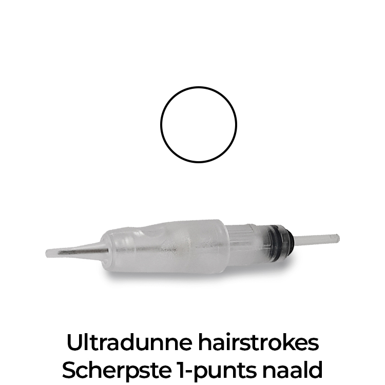 De Micro 1-punts liner heeft een puntdiameter van 0.18 mm en is zeer geschikt voor het plaatsen van zeer dunne Hairstrokes. Geschikt voor hyper realistische pigmentatie. Let op, deze naald is zeer scherp en dun. Niet geschikt voor dunne of rijpe huiden.