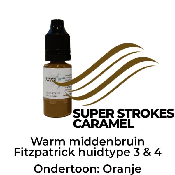 All good things start with Caramel! Dit donkerblond/middenbruin pigment van het merk Derma Codes heeft een warme oranje ondertoon. Geschikt voor Fitzpatrick huidtypes: 1 & 2 en speciaal voor warme rossige types. Ook geschikt voor Fitzpatrick huidtype 3 & 4 om als kleur toe te voegen. Voeg een drupje toe aan de pigmenten van de Nano-lijn om op te warmen. Ook te gebruiken als correctiekleur bij paars of blauw opgekleurde Hairstrokes. Is door de toevoeging van Fixing Agent aan het pigment speciaal ontworpen voor het creëren van de mooiste Hairstrokes & Microblading.