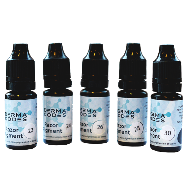 Razor Sharp Pigments zijn speciaal ontworpen om een geschoren effect te creëren, ideaal voor mannen die regelmatig hun hoofd scheren of millimeteren met een tondeuse. Het interessante aan deze pigmenten is dat, ongeacht de natuurlijke kleur van de baard - zwart, zilvergrijs, bruin of rood - de geschoren huid altijd een zilvergrijze uitstraling heeft. Dit komt door de kleur van de haarfollikels, die altijd een combinatie van zwart en grijs tonen. Het concept van grijs en zwart als dezelfde kleurpigmenten wordt verhelderd: grijs wordt gezien als een verdunning van zwart. Wanneer zwart pigment verdund wordt met water, ontstaat automatisch een grijstint. Op de huid wordt een vergelijkbaar effect bereikt doordat een deel van het zwarte pigment wordt afgestoten, waardoor een grijstint ontstaat. De diepte waarop het pigment in de huid wordt geplaatst is cruciaal voor de uiteindelijke kleurtoon; hoe dieper het pigment, hoe koeler de kleur zal zijn. Derma Codes Razor Sharp Pigments zijn specifiek samengesteld om 100% stralingsvrij (niet-polaire) pigmenten te zijn op basis van koolstof, wat volledig veilig is van farmaceutische kwaliteit. Deze pigmenten zijn vrij van glycerine en kunnen niet worden gemengd met reguliere glycerinepigmenten. Derma Codes biedt een reeks van 5 verschillende 'shades of black' om een authentieke 'Razor Sharp Look' te creëren, allemaal met hetzelfde zwarte pigment maar gecorrigeerd voor een blauwe ondertoon. In het kort, Razor Sharp Pigments bied een scala aan tinten die zijn geoptimaliseerd om het gewenste geschoren effect te bereiken, en ze zijn veilig en van hoge kwaliteit.