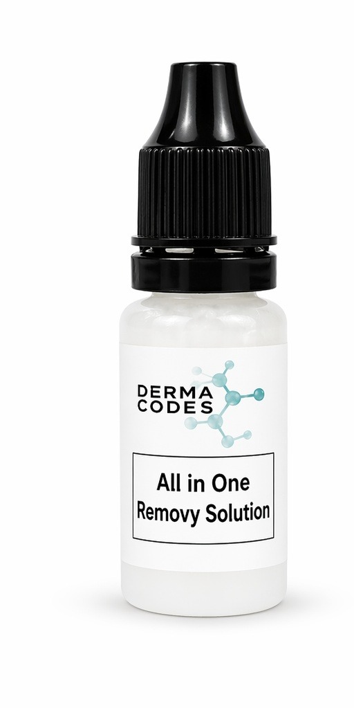 Removy Solution All in One Van PMU Groothandel Derma Codes is een professionele correctievloeistof voor het oplichten, corrigeren en verfijnen van PMU-pigmentaties.