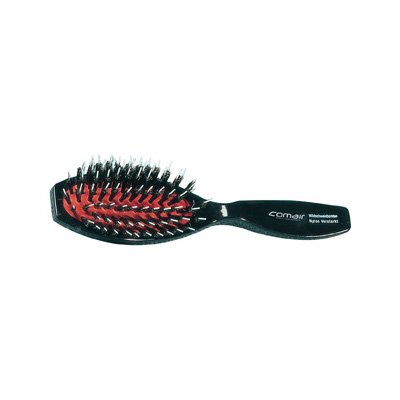 Deze fijne borstel ligt prettig in de hand. Het heeft een zwart kunststof korpus, rubberkussen, nylon massageborstels en varkenshaarborstels. zachte ontwarring van het haar is hiermee een fluitje van een cent. Bovendien is het natuurlijk verzorgend voor het haar.