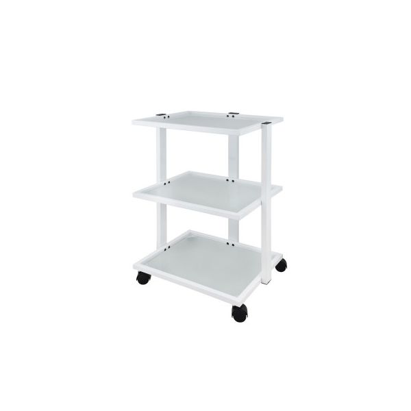 De werkwagen ‘Facile’ is een professionele en praktische mobiele werkwagen. De beauty trolley is voorzien van een eenvoudig design met drie melkglazen platen met genoeg ruimte voor al jouw producten, materialen en apparaten. De platen zijn makkelijk afneembaar en de werkwagen past binnen ieder interieur. Het gat in het frame biedt plaats voor het plaatsen van een loeplamp. Dankzij de vier wielen is de werkwagen makkelijk te verplaatsen in jouw salon of praktijk.