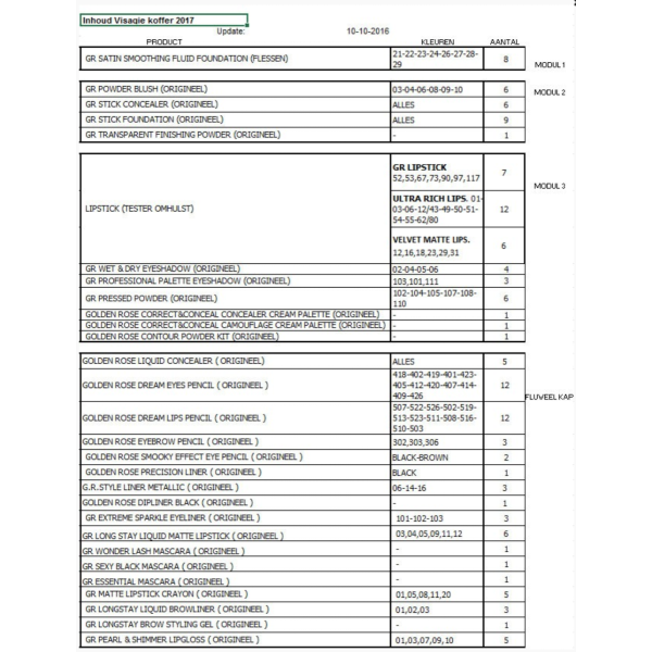 Deze professionele visagiekoffer is de beste vriend van elke professional! Door de zeer complete 136-delige make-up set is de inhoud van de koffer geschikt voor het aanbrengen van de perfecte make-up. De koffer is zeer stevig en makkelijk mee te nemen.